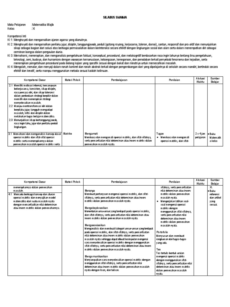 Berbagi ke twitter berbagi ke facebook Silabus matematika kelas 6 semester 2 kurikulum 2013 merupakan perangkat yang wajib dimiliki oleh guru selain sebagai pelengkap administrasi dan juga sebagai pedoman mengajar dalam menentukan arah kemana jalur yang akan kita sampaikan kepada peserta didik di dalam kelas, tanpa perangkat pembelajaran admin hasilnya tidak akan mengenai sasaran bahkan jauh dari harapan. Silabus adalah salah satu komponen perangkat pembelajaran dari rencana pembelajaran pada suatu kelompok mata pelajaran dengan tema tertentu, yang mencakup standar kompetensi, kompetensi dasar, materi pembelajaran, indikator, penilaian, alokasi waktu, dan sumber belajar yang dikembangkan oleh setiap satuan. Download silabus matematika kelas 5 sd mi semester 2 kurikulum 2013 revisi terbaru, pada kesempatan kali ini kami admin massalam.com kembali memberikan perangkat kelas lima mapel pelajaran matematikan lengkap dan gratis. Ikuti websiteedukasi.com di aplikasi google news dengan cara following (temukan feed website edukasi di bagian following/mengikuti) untuk mendapatkan.