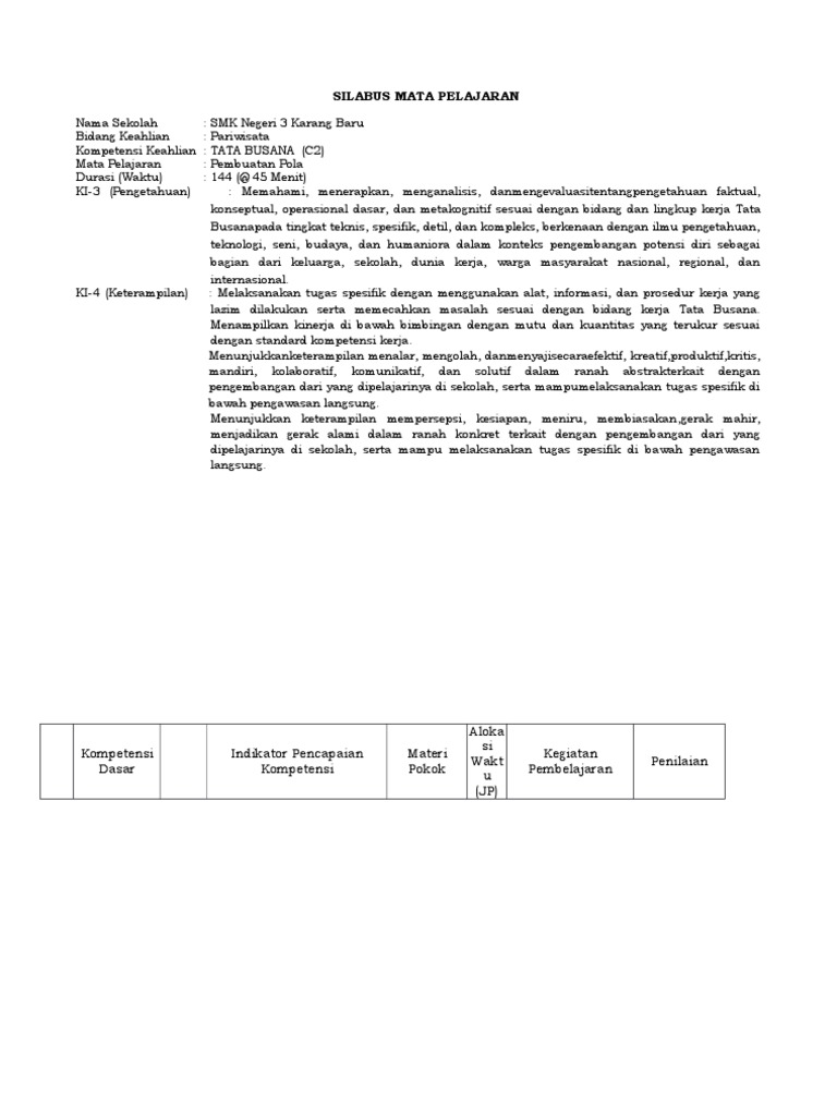 Silabus Tata Busana / Silabus Bahasa Indonesia Klas Xi K T S P Web Viewmenganalisis Tata Busana Tata Panggung Tata / Contoh silabus pengantar wisata kelas x tata busana semester 1 dan 2.