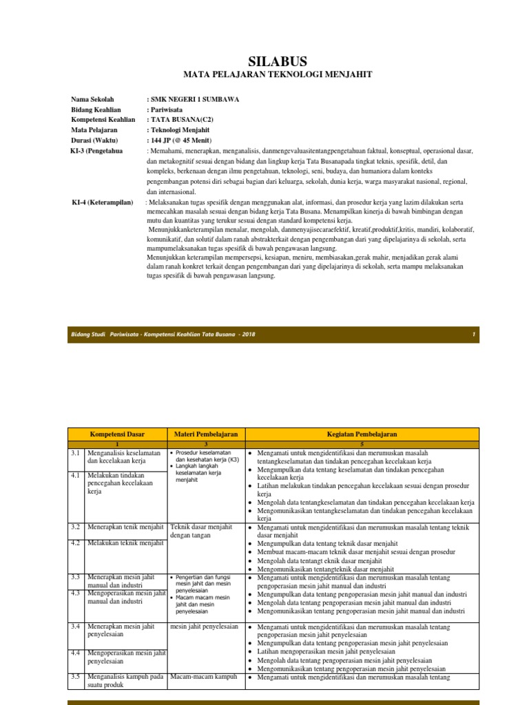 Kemandirian tata busana kelas xii/c. 108 jp (@ 45 menit) deskripsi ki: Silabus tata busana smk berkarakter. Tata busana kelas /semester : Assalamu'alaikum bapak ibu guru yang kami cintai, selamat datang di pusat rpp dan silabus online. Bagi anda para guru dan pengajar yang memerlukan rpp dan silabus tata busana smk berkarakter, kami menyediakan apa yang anda cari, kami menyediakan rpp dan silabus tata busana dalam bentuk cd atau anda pun bisa mendapatkannya dalam bentuk file yang dikirim ke email anda.file yang ada dalam cd ini adalah sebagai berikut: Silabus kompetensi keahlian tata busana Isi lebih lengkap dan berkualitas, proses cepat, harga murah dan bebas ongkos kirim, hubungi eko heri 0821 405 89 748 Berta kwa kepada tuhan yang maha esa. Access free silabus keterampilan menjahit tata busana smp mts industry. Rpp busana batik kurikulum 2013 smk tata busana. Smk negeri 3 malang kelas: Mengapresiasi dan menerapkan berbagai macam tusuk hias pada lenan rumah tangga dan busana harian.