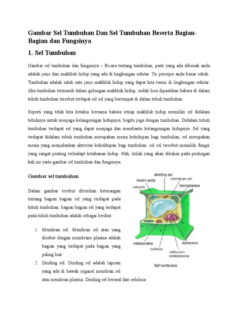 Sel tumbuhan beserta organel dan fungsinya (lengkap!) · 1.